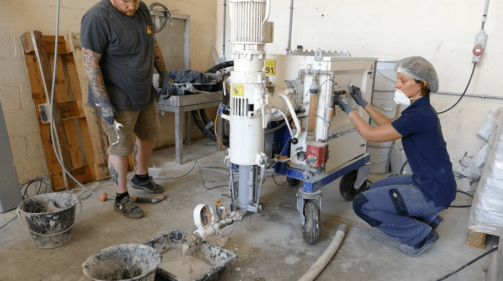 While learning to master the machine, the teams successfully formulated a mixture containing aggregates up to 3 mm in size.