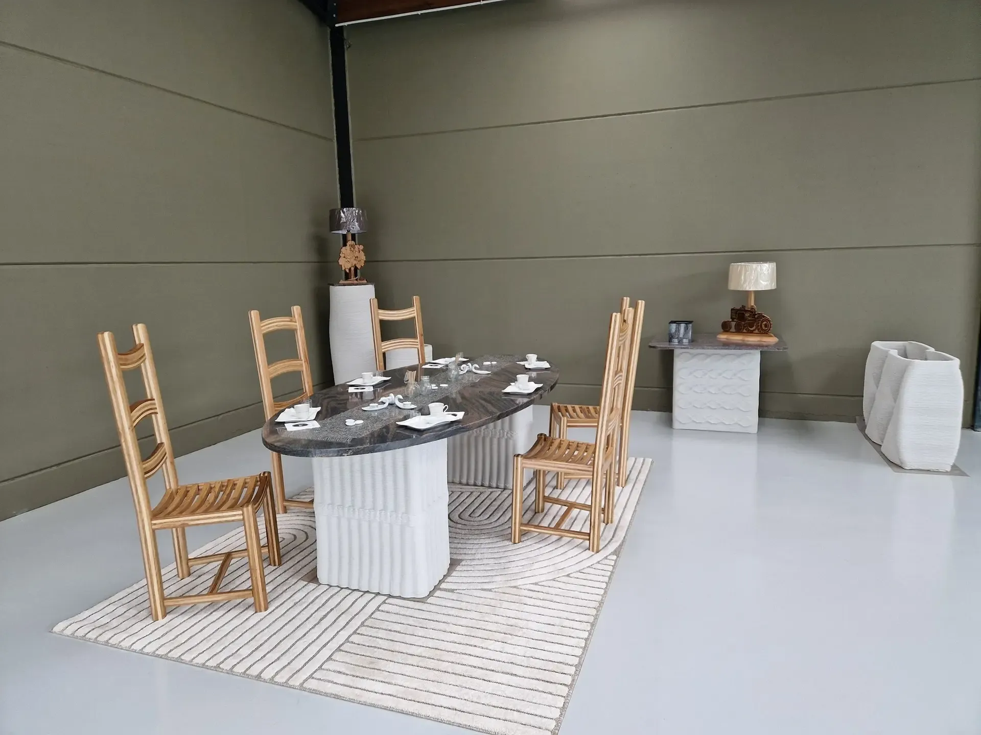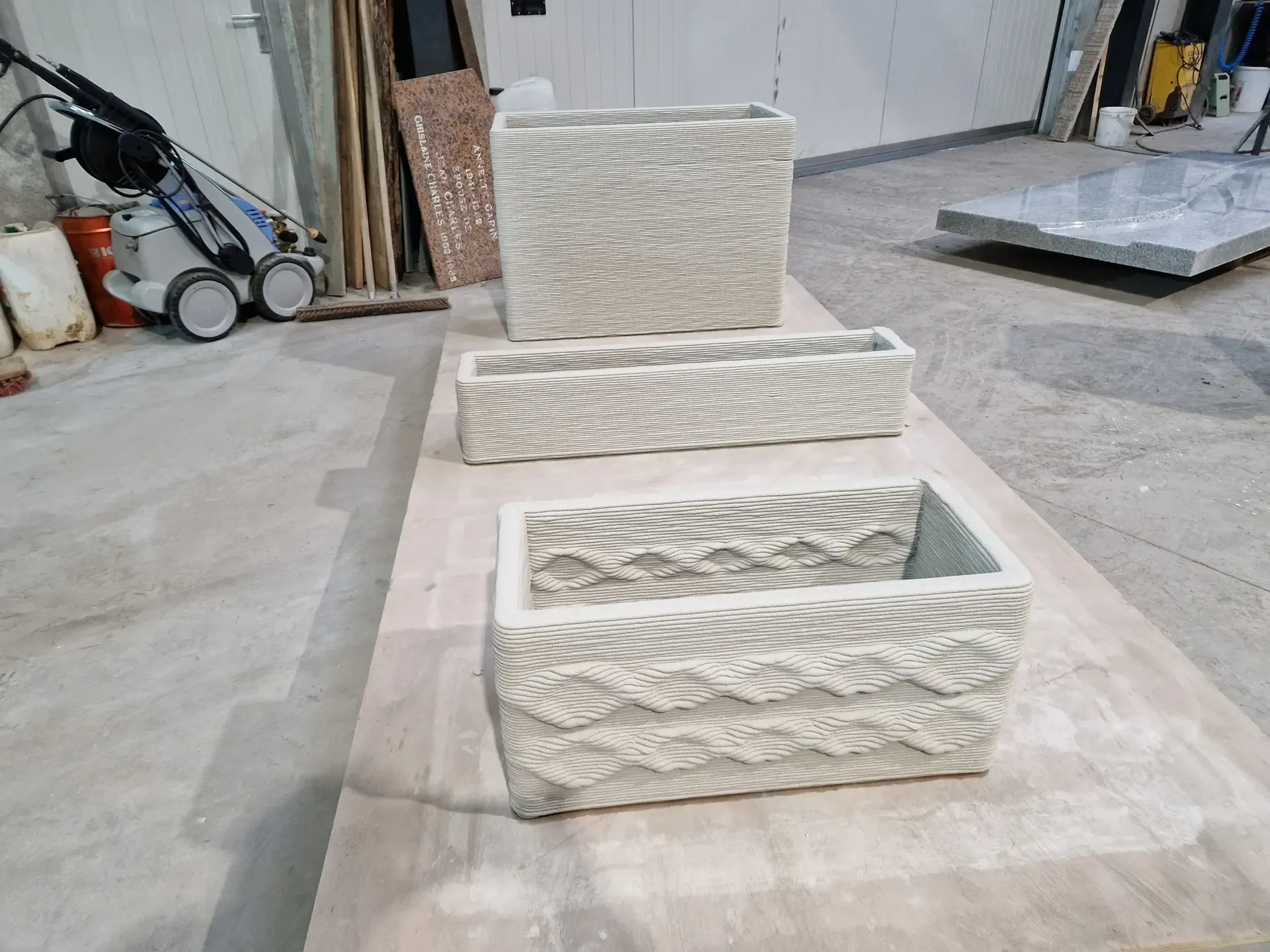 That’s when the idea of launching a new decorative design business emerged — one that combines woodworking, granite work, and 3D concrete printing.