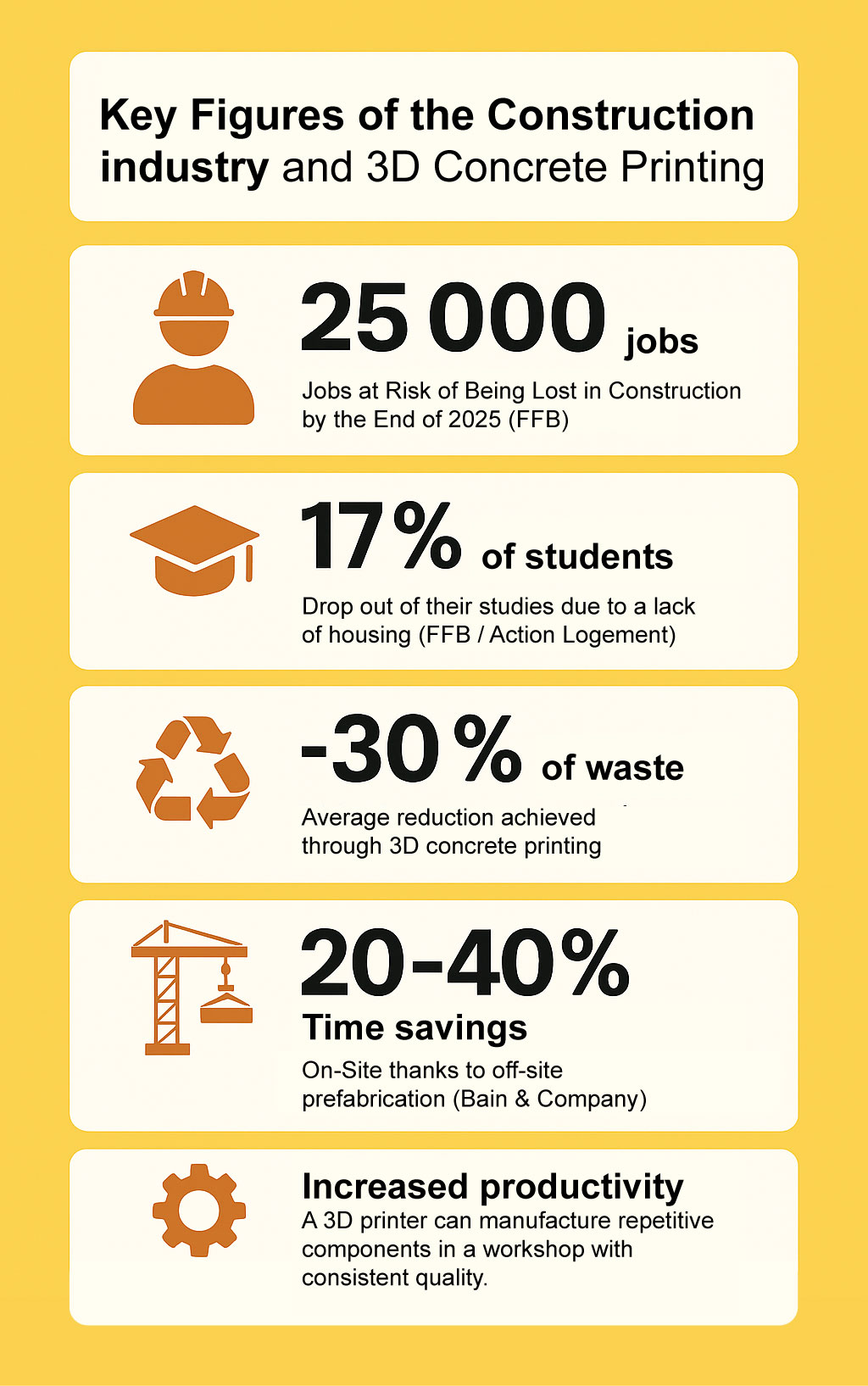 As the housing crisis and economic instability continue to weigh on the construction industry, many voices are calling for the urgent adoption of new industrial methods. 3D concrete printing is emerging as a practical and complementary solution to traditional prefabrication.